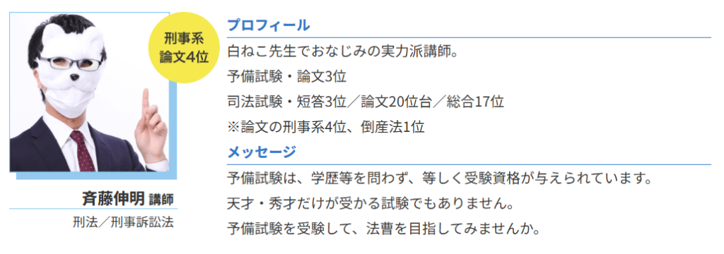 斉藤伸明講師は最短ルートで司法試験・予備試験に合格したい人に最適な講師です。